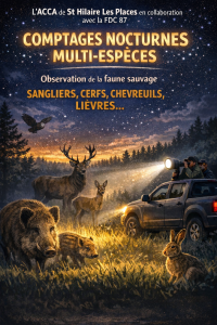 Haute-Vienne procèdera à des opérations de dénombrement nocturne multi-espèces du 2 au 20 mars prochain.