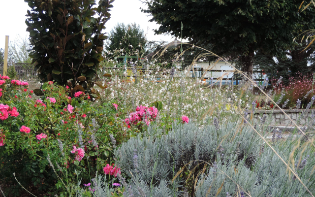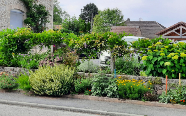 Depuis le début de cette aventure florale, l’originalité réside dans la recherche esthétique et la diversité. Deux cents arbres et arbustes ont été plantés, d’autres le seront courant 2023. Une grande variété de vivaces compose la base du fleurissement qu’un millier d’annuelles viennent “taquiner” de mai aux gelées. Le choix des plants va vers des espèces plutôt mellifères et résistantes aux écarts climatiques de notre région.